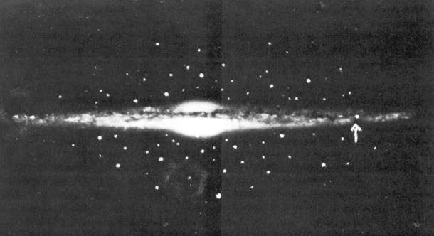 Scheibe und hat einen Durchmesser von 160.000 Lichtjahren. Ihre Dicke beträgt