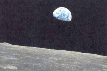 Erde über dem Mondhorizont. Eine Aufnahme aus dem Apollo 8-Raumschiff.
