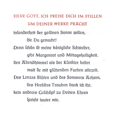 Sonnengesanges von Franz Brentano zugrunde. Die Texte sind den Holzschnitten zugeordnet. |
