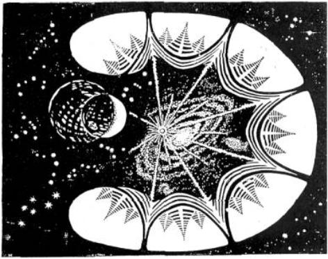 ausdehnenden Kosmos zu - hier im Weiß des Bildes dargestellt - wie in einem