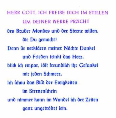 durch Bruder Mond und die Sterne; geschaffen. der so nützlich ist und bescheiden