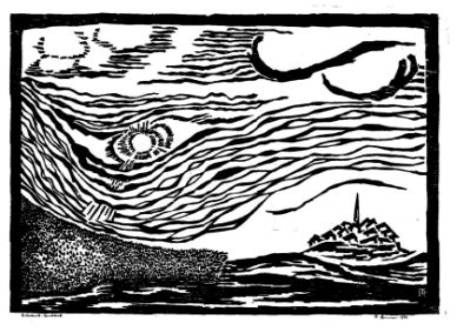 1985 Bildgröße 45/33 cm Es wurde versucht im Hintergrund die unendliche Weite des