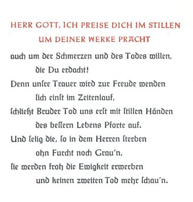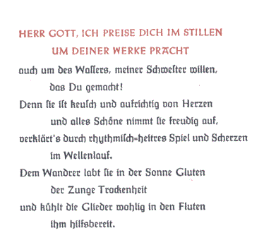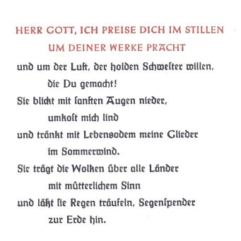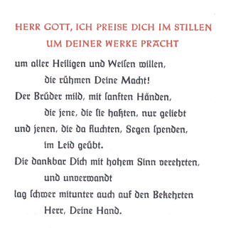 augenähnliche Element inmitten der Flammen soll das im Sonnengesang angesprochene Wesenhafte des Feuers (Bruder)