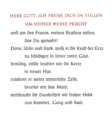 hl. Franziskus, rechts oben im Bild, bei dem Lobpreis des Bruders Feuer. Das
