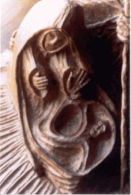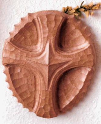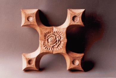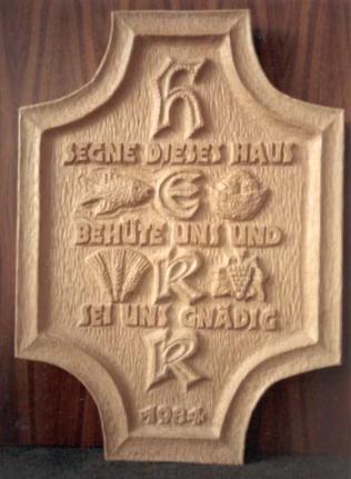 Größe 27/27 cm. Geschnitzt 1976 aus Kirschbaum. |